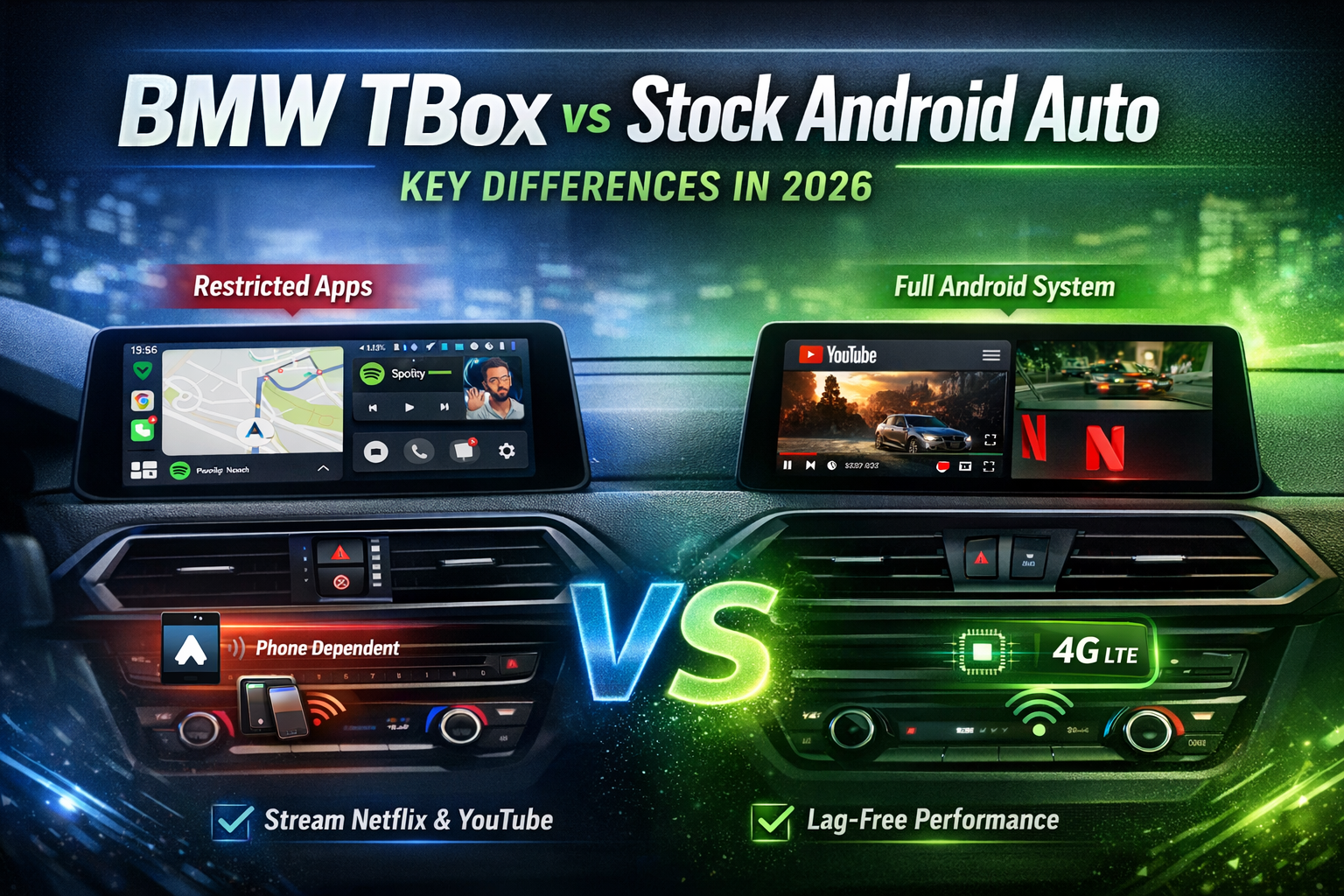 Android Auto de serie es un espejo inteligente. La BMW MMB Box es un segundo cerebro — uno que vive dentro de tu salpicadero.