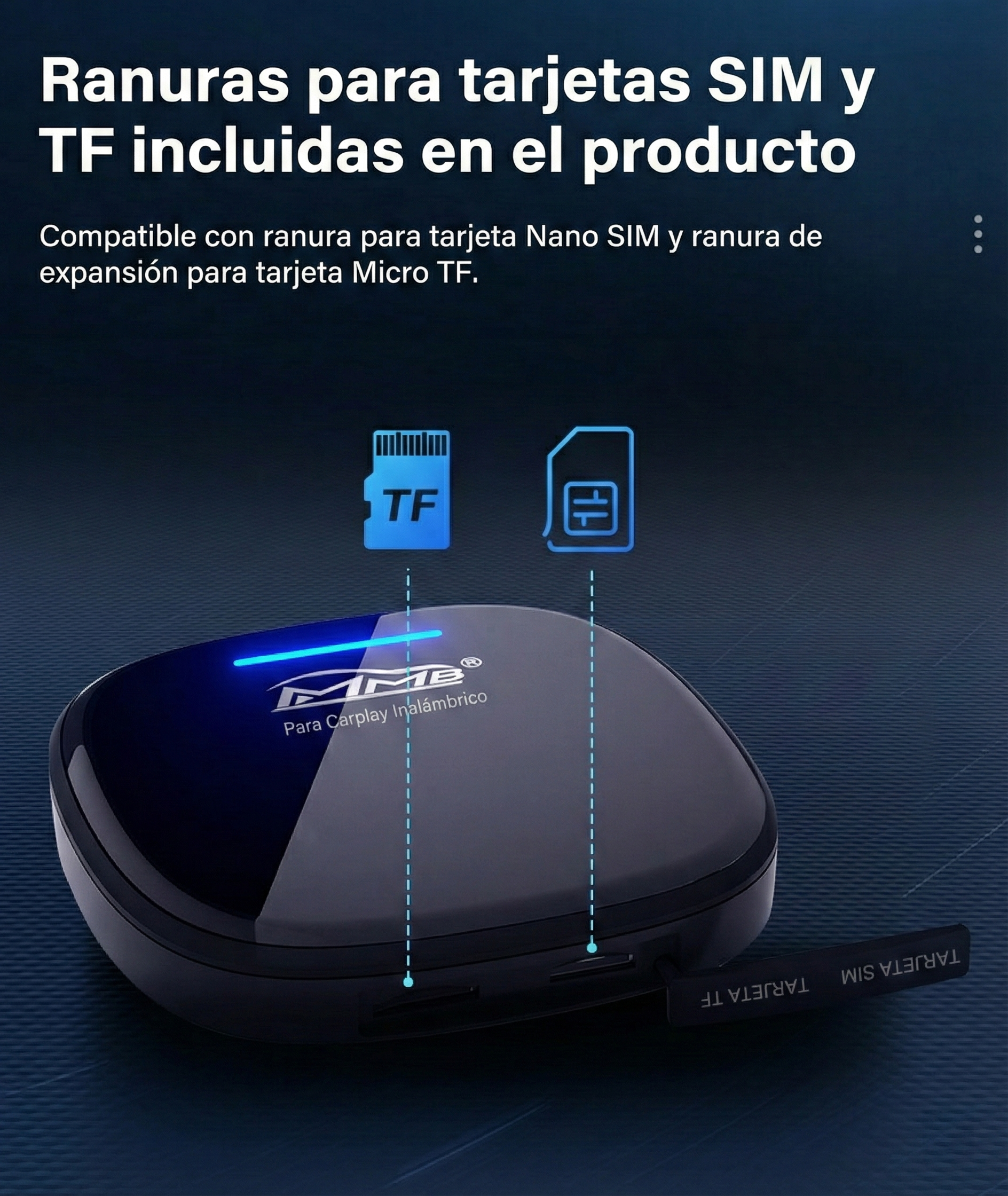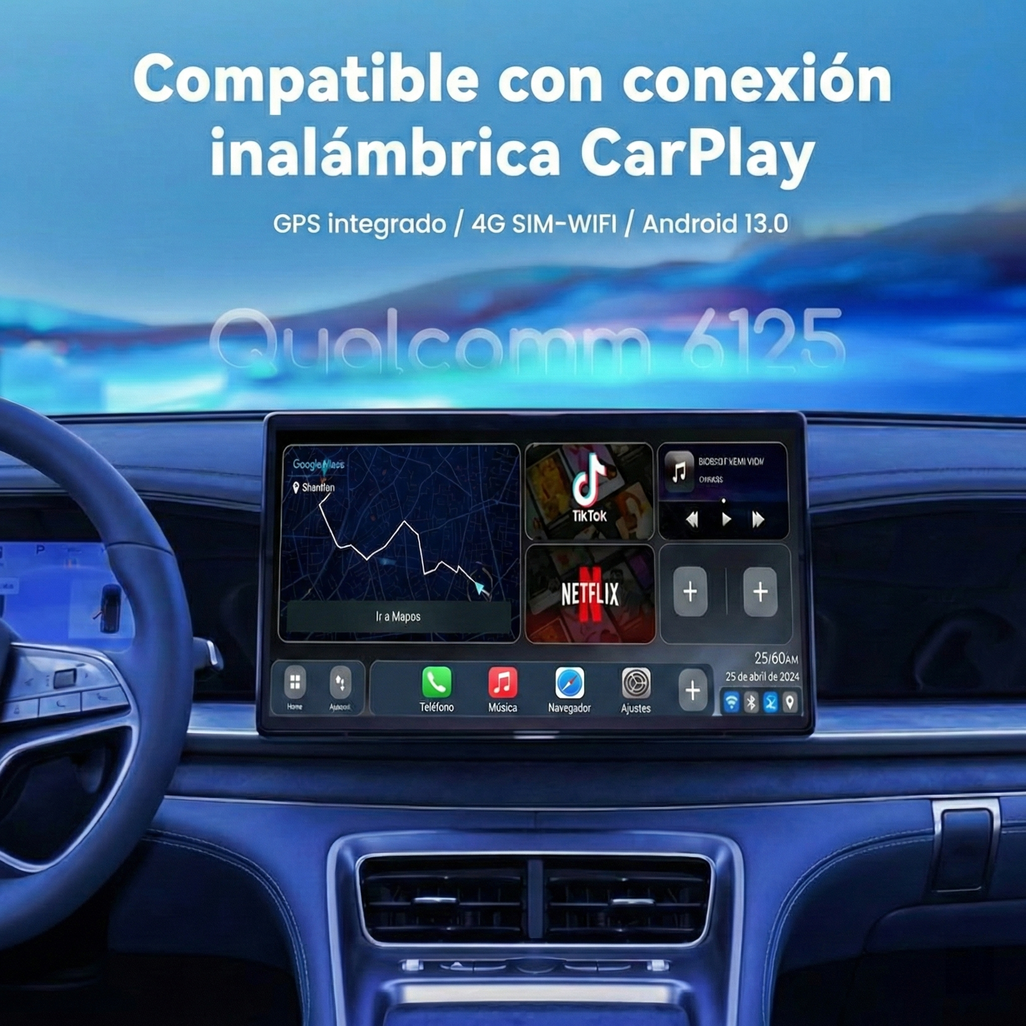 P: ¿Qué es un adaptador multimedia inalámbrico CarPlay? R: Es un dispositivo plug-and-play que actualiza la funcionalidad CarPlay de tu vehículo a un sistema Android completo. Esto proporciona funciones adicionales como Google Play Store, servicios de streaming (Netflix, YouTube) y acceso a internet mediante una tarjeta SIM 4G.