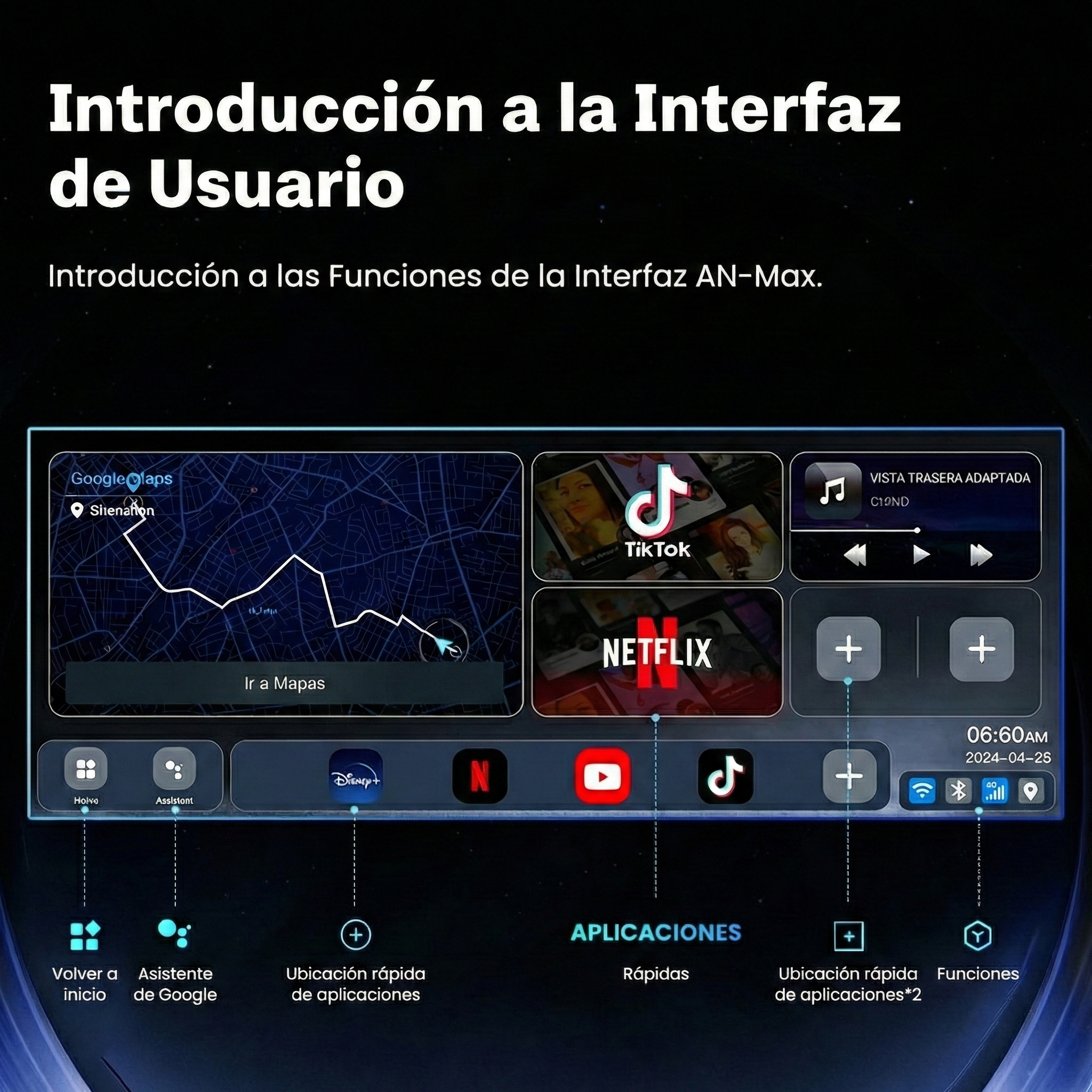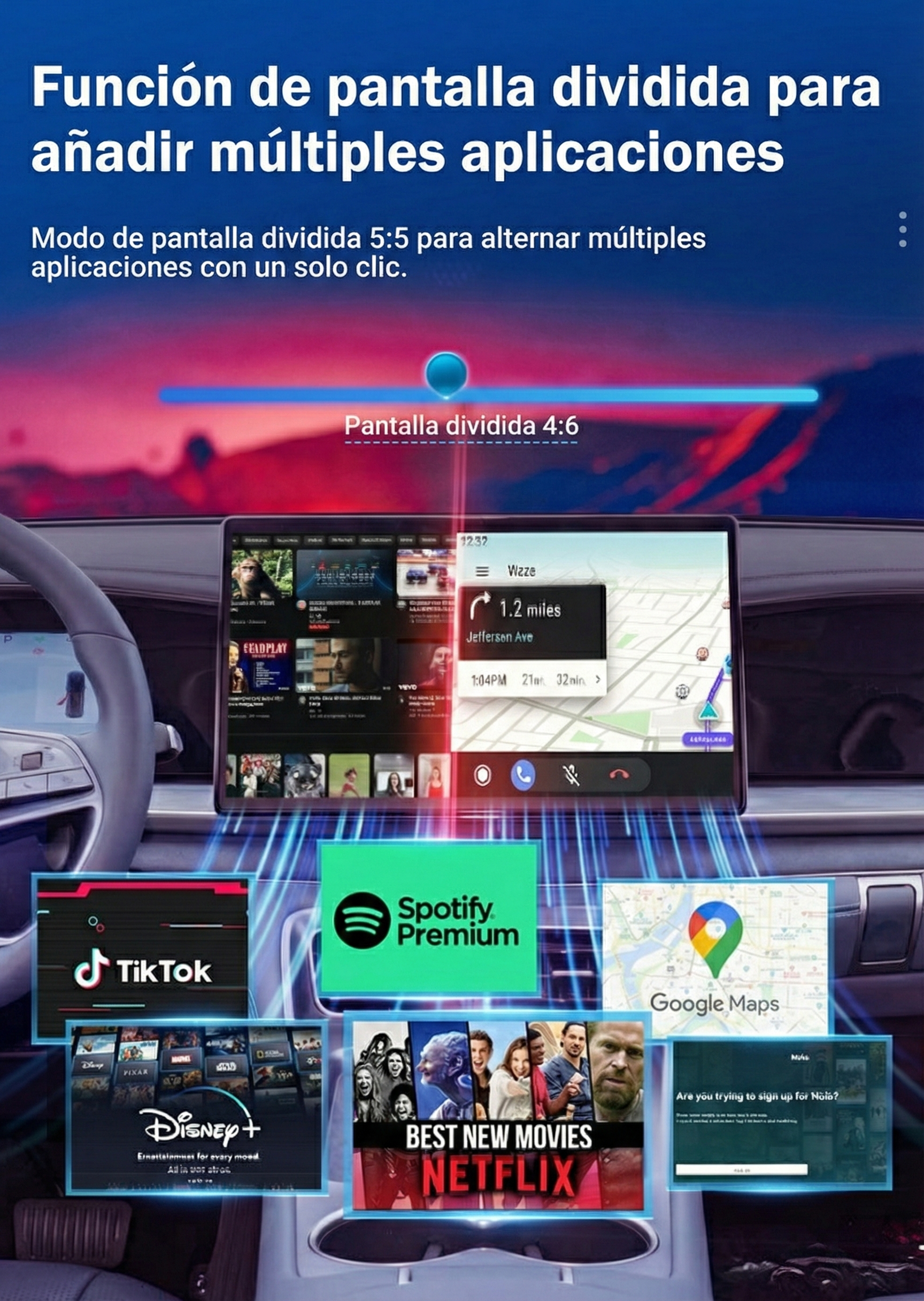 Reproducción de vídeo HD: Admite vídeo de hasta 4K para una experiencia de visualización inmersiva en la pantalla del coche. Ideal para el entretenimiento en estaciones de carga o para los pasajeros. Multitarea y juegos: Ejecuta varias aplicaciones en segundo plano. Puedes usar la navegación mientras escuchas música.