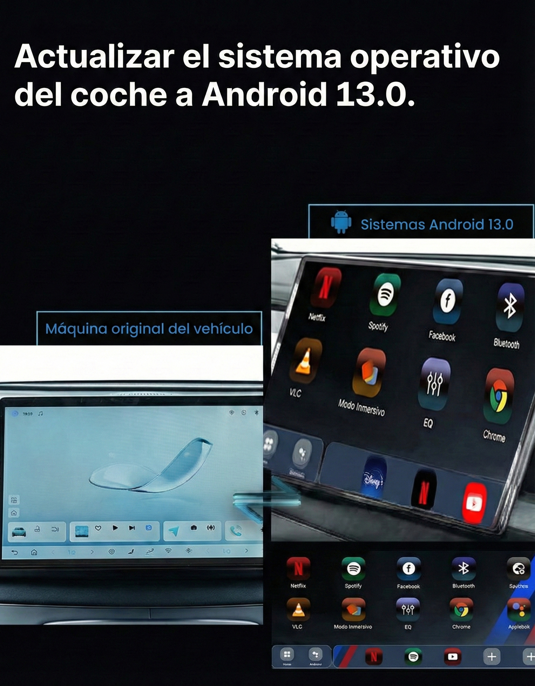 Este dispositivo se integra a la perfección con la pantalla original de tu coche, transformándola en una potente plataforma inteligente Android. Disfruta de la comodidad de Apple CarPlay y Android Auto inalámbricos, o explora un sinfín de posibilidades a través de una conexión 4G dedicada, accediendo a toda la tienda de aplicaciones Google Play. ¡Todo ello sin sustituir la pantalla original de tu coche!