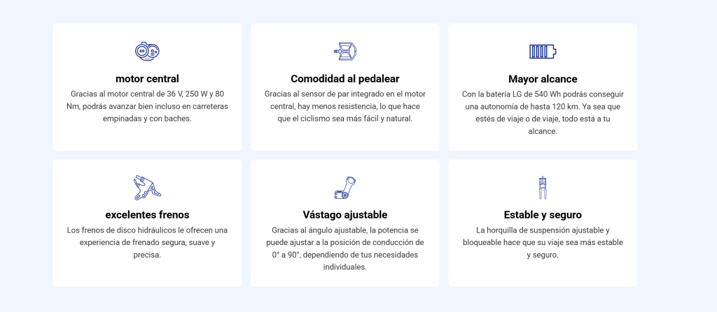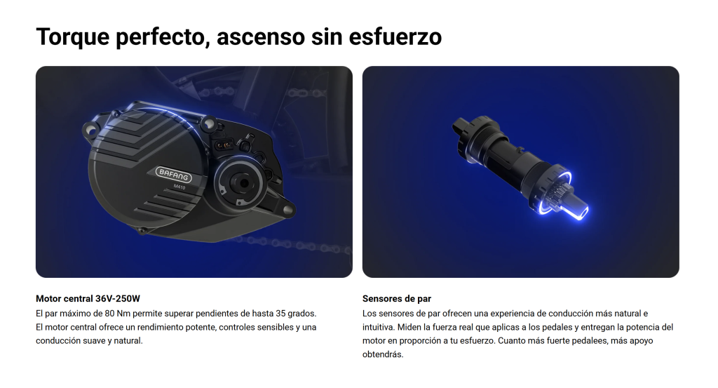 | Sensor de par | Respuesta inmediata y asistencia natural al pedal para una sensación de conducción intuitiva. |
